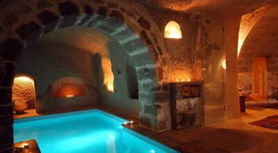 Absolutamente surrealista, así es la mansión del Hotel Sacred House de la Capadocia. Un lugar único en la que el spa se encuentra en auténtica roca volcánica, entre ruinas y formaciones rocosas. Todos sus espacios combinan espacio, lujo y un fascinante diseño interior galardonado con el Premio Internacional de Renovación y Diseño para Hoteles Boutique en 2014.