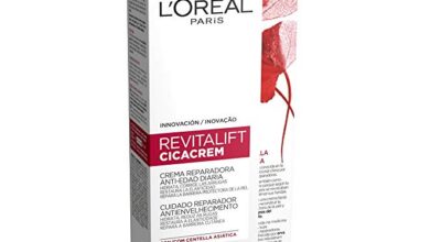 L’Oreal Revitalift Cicacrem – Crema reparadora antiedad: con extracto de centella asiática, esta crema ayuda a corregir, reparar y atenuar los signos de la edad con una textura fluida, no grasa que hidrata la piel y la deja tersa al instante. Puedes comprarla en Amazon por 10,74€.