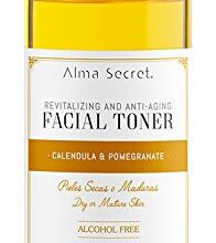 Alma Secret, tónico facial antiedad de caléndula y granada: este tónico facial está específicamente formulado para pieles maduras y deshidratadas ya que tiene propiedades calmantes, revitalizantes y antiedad. El extracto de granada es un potente antioxidante, encargado de regenerar los tejidos. Formulado con Extractos Botánicos de Caléndula, Malva y Manzanilla ideales para reparar, hidratar, descongestionar y suavizar las pieles secas, maduras, atópicas o sensibles. No contiene alcohol ni ingredientes artificiales como parabenos o ftalatos, y es cruelty-free. Comprar tónico antiedad de Alma Secret.