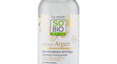 So’Bio Etic, agua micelar antiedad: este agua micelar es perfecta para pieles maduras, contiene aceite de argán y ácido hialurónico, potentes activos antiedad que fomentan la regeneración celular de la piel. Está formulada al 99% con ingredientes naturales, es muy respetuosa incluso con las pieles más sensibles. Deja la piel limpia, fresca y más tersa. Comprar agua micelar antiedad en Amazon.