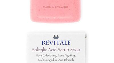 • Jabón exfoliante con ácido salicílico: este jabón limpia en profundidad la piel gracias al ácido salicílico, elimina las bacterias acumuladas en la piel y ayuda a difuminar las manchas del rostro, por ejemplo las provocadas por granitos o manchas del sol. Sus gránulos naturales de hueso de albaricoque eliminan la piel muerta y dejan los poros libres de suciedad. Comprar en Amazon.