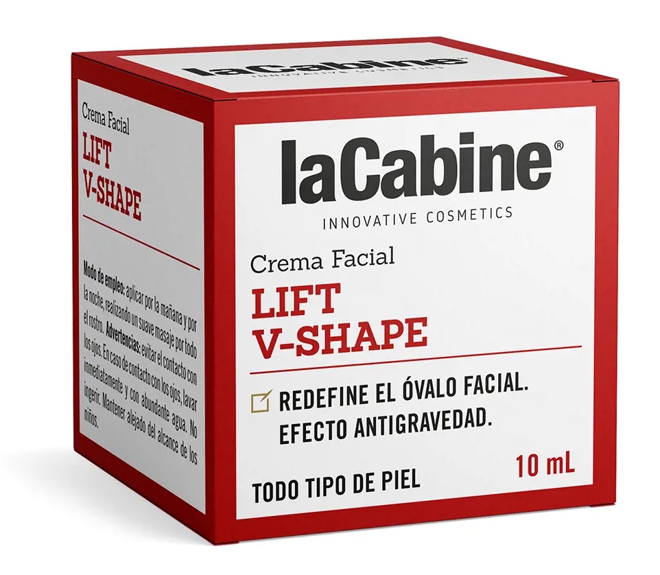 Crema Lifting V de La Cabine. Crema facial con efecto Lifting, que redefine el óvalo facial gracias a su aportación de firmeza a la piel, generando un efecto anti-gravedad. Los péptidos reafirmantes, estimulan la producción de colágeno y elastina, elementos fundamentales del sostén de la piel. Además, disminuyen las líneas de expresión, los signos de flacidez y la pérdida de elasticidad.
