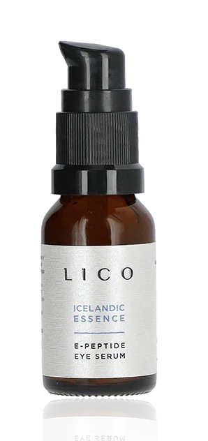 E-Peptide Eye Serum de LICO. Serum ultraligero formulado con un innovador tetrapetido vegano, microalgas sometidas a presión ártica (enriquecidas con agua de mar con propiedades energizantes y un Oligoalginato de alto peso molecular) y extracto de liquen islandes. Descongestiona la mirada al instante, luciendo una mirada fresca.