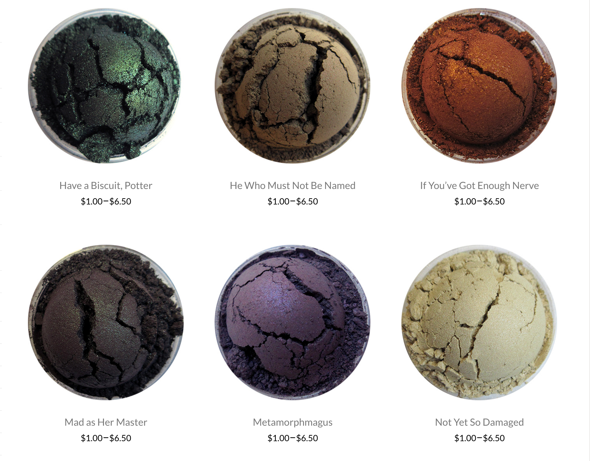 Pero como te decíamos, Storybook Cosmetics no ha sido la única en lanzar una línea de productos inspirada en la saga. Shiro Cosmetics no se corta a la hora de promocionar sus cosméticos y podemos encontrarnos con auténticas caricaturas de Harry Potter en su web. Esta marca también está especializada en líneas de maquillaje de lo más fantásticas, desde Pokemon hasta Juego de Tronos, Hora de aventuras o El retorno de las brujas.