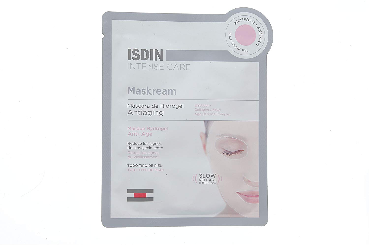ISDIN, Mascarilla facial anti-edad: la mascarilla de hidrogel de Isdin mejora la densidad, elasticidad y tonicidad de la piel aportando un aspecto visiblemente rejuvenecido. Coloca la máscara cuidadosamente sobre la cara ajustándola a la altura de tus ojos y déjala actuar unos minutos, su tecnología low release liberará poco a poco los activos hidratantes antiedad para una piel lisa y tersa. Comprar en Amazon a partir de 7,50€.