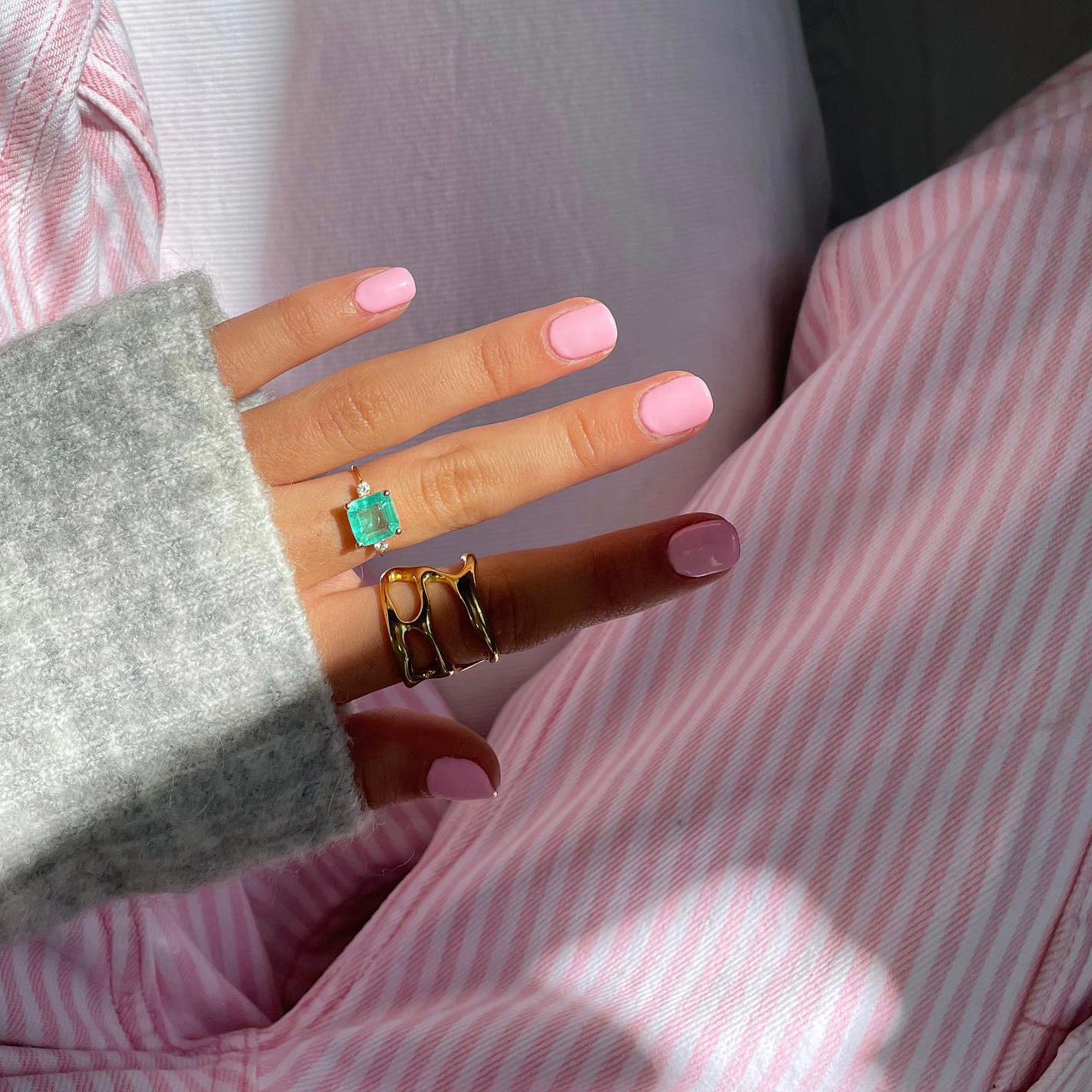 1. Uñas rosas pastel con efecto aura