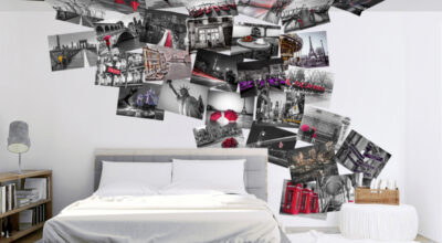 Además de los cabeceros convencionales podemos recurrir a otras técnicas para vestir y arropar la cama. Un ejemplo es el uso del papel pintado como cabecero ofreciendo un efecto tipo mural. En este sentido, también se pueden crear divertidos collages u optar por papeles pintados que imitan y ofrecen collages muy logrados.