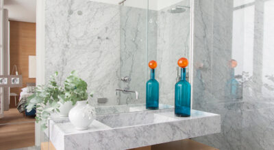 Los baños son estancias húmedas por razones obvias y existen algunos materiales que no son óptimos para estas habitaciones. Apuesta por el mármol, la cerámica, los microcementos, los papeles pintados o los paneles de cristal y huye de materiales como la madera, y sí la usas asegúrate de que sea resistente al agua.