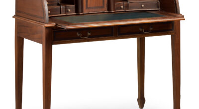 Para darle protagonismo al secreter podemos elegir alguna alfombra de tonos lisos y colocarla debajo de la pieza de mueble. También podemos ornamentar el secreter con artículos de despacho como un abrecartas, una pluma, un marco antiguo… En la actualidad existen infinidad de accesorios que pueden hacer de nuestra mesa de trabajo un lugar apetecible en el que nos encante estar, solo tienes que ir probando y descubrir cuál es la combinación perfecta con la que te sientas 100% cómoda trabajando.