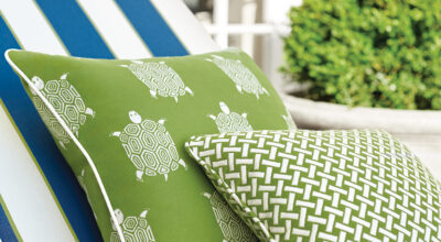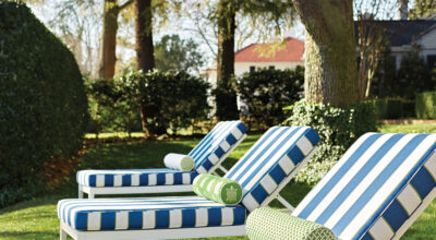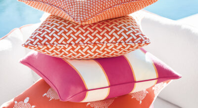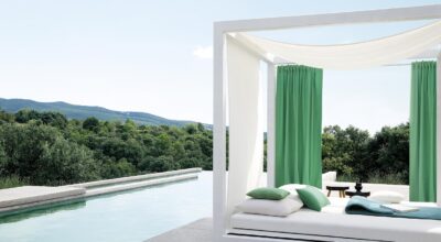 Uno de los complementos más recurrentes a la hora de ambientar cualquier patio, jardín o zona chill out es el uso de las telas de exterior. El must have para esta temporada son las telas brillantes y radiantes para dar más luminosidad y resplandor a los espacios abiertos. Estas telas, en distintas gamas de color, son perfectas para confeccionar cojines, para vestir hamacas, mecedoras, sillones… ya que están compuestas por un tejido 100% acrílico y flexible. Si combinamos los complementos y artículos confeccionados entre sí conseguiremos una sintonía perfecta. Algunas de las marcas de telas de exterior más reconocidas son Thibaut y UV Pro Outdoor Fabrics.
