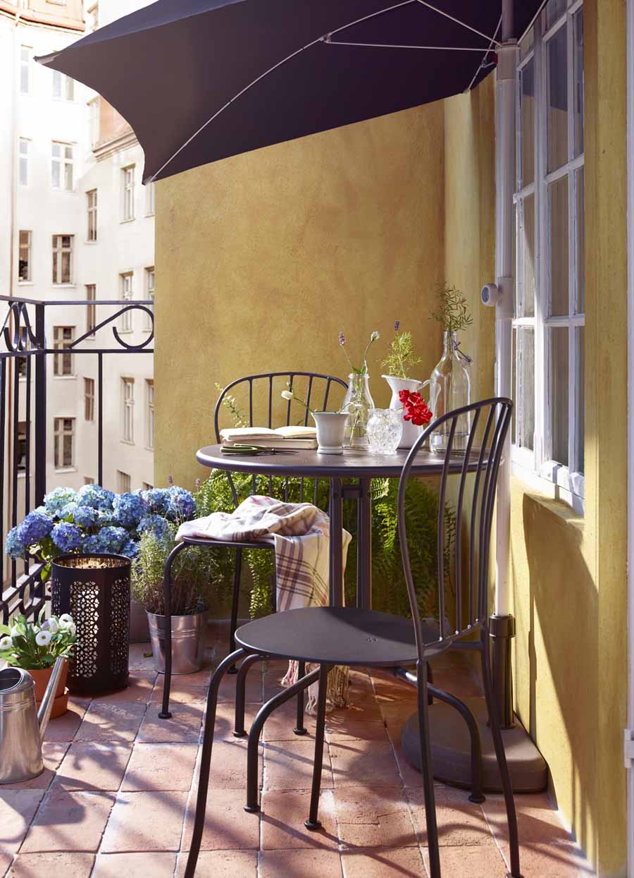 Para combatir el calor del verano, nada mejor que hacernos con una sombrilla. ¿Qué? ¿Crees que no cabrá en tu balcón? ¡Lo hará si te decantas por una que se pueda pegar a la pared! ¿Te has fijado en lo bien que queda en este caso?
