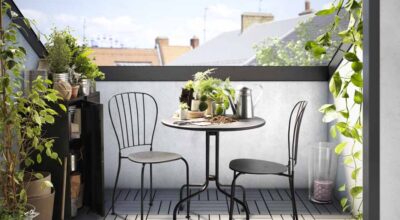 Antes de lanzarte a comprar muebles sin ton ni son, te recomendamos que visualices mentalmente cómo te gustaría que fuese tu balcón. Primero, sé consciente del espacio con el que cuentas y toma las medidas y referencias adecuadas para que los muebles encajen después a la perfección. Pensar en el uso que quieres dar a este rincón de tu casa es sin duda esencial: ¿quieres desayunar en él? Con una mesita y unas sillas tendrás suficiente. ¿Cenar? No te olvides de añadirle entonces un toque de iluminación a las paredes. ¿Tumbarte a leer un libro? Quizá colocar un banco sería la mejor opción.
