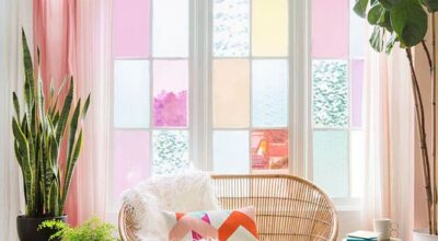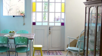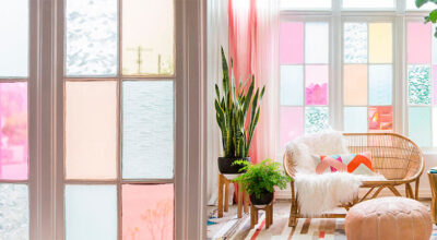 Si eres una apasionada de color y los espacios llamativos aprovecha uno de tus rincones favoritos de la casa y hazlo tuyo por completo incorporando cristales de colores a tu gusto. Puedes mezclar tonos más fuertes con suaves y que la decoración del ambiente sea acorde: colores frescos en las paredes como los tonos pasteles, mobiliario de colores vivos…