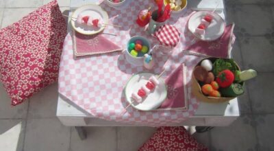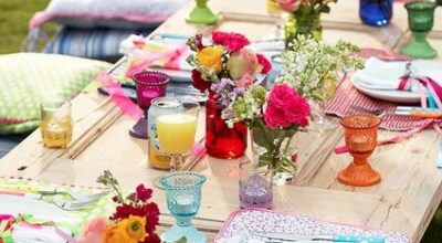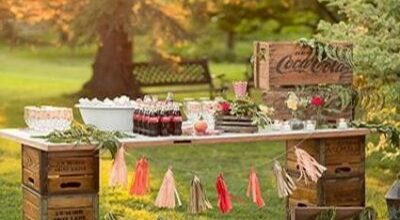 Solo por el hecho de celebrarlo en un lugar al aire libre ya estamos abriendo una enorme puerta a la creatividad. Si decides que sea en una terraza o jardín y además contamos con una pérgola, ésta nos ayudará a servir de estructura y centro de los elementos decorativos: pañuelos, globos, guirnaldas, banderitas… ¡todo vale! Otro de los muebles que nos puede dar mucho juego a la hora de decorar son las sillas y la mesa, ¡puedes incluso personalizarlas! Ahora está muy de moda todo lo vintage, por lo que unas cuantas cajas de madera pueden servirte para crear una «Candy bar» de chuches, helados, limonada… o un lugar donde los niños puedan pintar y dibujar ¡imaginación al poder! Y, ¿qué te parece la idea de crear un gran picnic? ¡Como lo oyes! Dará mucho juego a la hora de decorar y será una forma diferente a lo que estamos acostumbrados en este tipo de fiestas.