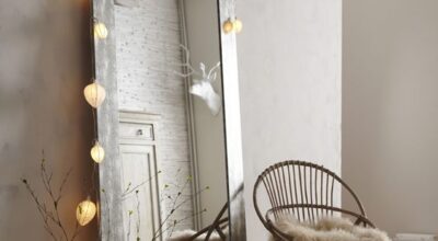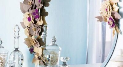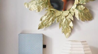 Otra opción mucho más sencilla puede ser adornar los espejos que ya teníamos, como por ejemplo pegando en ellos flores de papel, creando figuras geométricas con tiras adhesivas, colocando una guirnalda de luces alrededor de ellos o bien pegando palitos de madera alrededor (como los que usamos para cocinar brochetas) y pintándolos después con pintura dorada.
