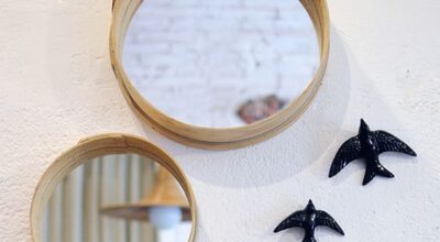 Podemos recrear algunos de estos diseños partiendo de elementos muy básicos, como una caja de galletas o una raqueta. Solo tendremos que pegar el espejo en ellas utilizando silicona o un adhesivo especial.