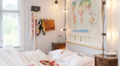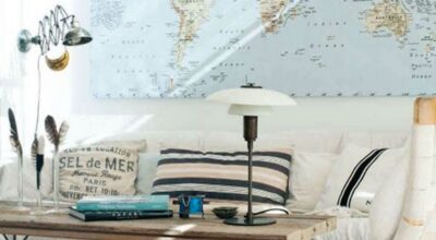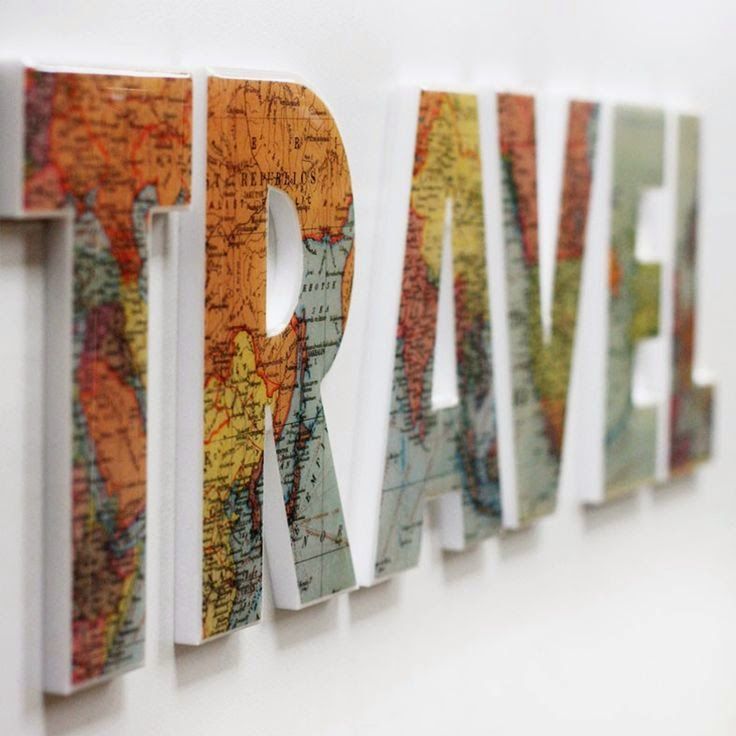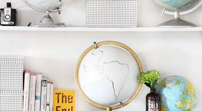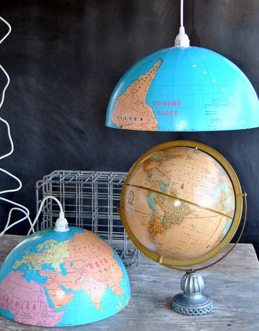 Los accesorios también se convierten en un gran recurso decorativo donde incluir los mapamundi. Las letras de madera o de papel maché son ideales pero podemos recurrir a la típica bola del mundo, menaje del hogar, jarrones… Lo mejor de esto es que cuando te canses de esta tendencia simplemente con retirar estos objetos habrás «limpiado» tu habitación de mapas.
