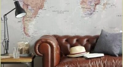 Las paredes se convierten en el soporte perfecto para estos murales y es que, a todas se nos vienen a la cabeza el recuerdo de los típicos mapas colocados en clase cuando íbamos al cole; pero la tendencia de los mapas mundi va mucho más allá. Puedes empapelar por ejemplo una de las paredes del salón y así aportar un aire distinto a la habitación.