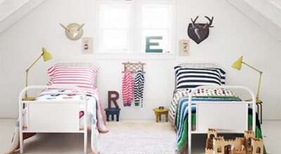 O personalizar cada parte de su cuarto, por ejemplo añadiendo objetos que les identifiquen en sus cabeceros, algo que además dará una mayor profundidad a la habitación: una cabeza de tigre, de ciervo, una reloj de cuco, una casita de muñecas, un cuadro, una lámina que les guste. Y si queremos que se vean todavía se sientan más identificados podemos hacerlo incluyendo guirnaldas de luces o colores, o letras de madera con sus iniciales e incluso con el nombre completo.