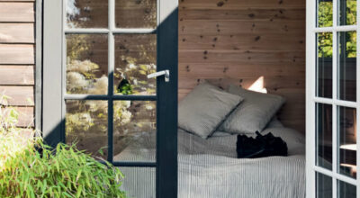 Los tonos neutros combinados con el negro que se fusiona a la perfección tanto en el interior como en el exterior de la casa mientras que el estilo de los muebles pasa por el retro y el vintage, con modernos y de tendencia. El porche y las day beds aportan la naturalidad que necesita la fachada en negro. El contrapunto perfecto para esta casa en la que su principal objetivo es el descanso y el relax de sus inquilinos. ¿Preparada para aprovechar los últimos días del verano a la «sombra»?