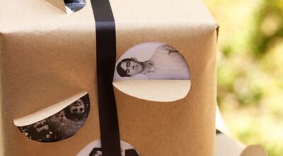 Tijeras, lazos, papel de regalo, washi tape… ¿Lo tienes todo? Pues ya estás lista para comenzar a crear un envoltorio original. Una de las ideas que más nos ha gustado es la de las cajas forradas con papel kraft y fotografías de esa persona tan especial, sin duda una buena combinación para crear tu propio papel de regalo personalizado.