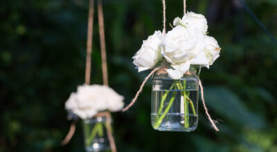 2. Por otro lado, los tarros de cristal también pueden servir como recipientes de maceta. Un poquito de tierra y unas flores, colgados con unas cuerdas darán un toque romántico y bucólico a tu jardín en las noches de verano.