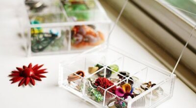 Las hieleras nos pueden servir para guardar la bisutería más pequeña, como los anillos, los pendientes de perlas o los abalorios. Si no tenemos una hielera en casa, podemos utilizar una caja de huevos. Siempre podremos pintarla y decorarla a nuestro gusto para hacerla más atractiva. Las cajas de metacrilato, aquellas que usamos para organizar los esmaltes de uñas, también son muy útiles.
