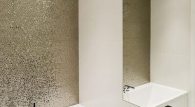 >Hoy en día los papeles pintados copan la mayoría de apuestas en interiorismo por eso, existen versiones para espacios más húmedos y de continua higiene como pueden ser el baño o la cocina que se adaptan a estas condiciones perfectamente. Otra de las opciones que te proponemos es introducir una pared en tu cuarto de baño con un papel pintado de color plata u oro. ¿Te atreves a tener un aseo diferente?