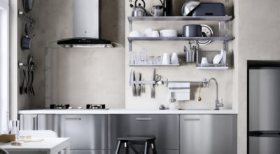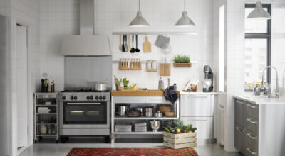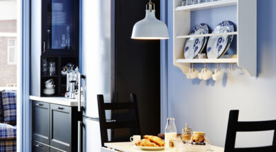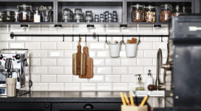 Si hay algo fundamental a la hora de conseguir que nuestra cocina parezca más grande es mantenerla ordenada. Y no hablamos solo de que los cubiertos estén recogidos, los vasos alineados y las galletas en su armario. Sino de que ese orden se convierta en algo funcional. ¿Cómo? A través del almacenaje: botes, cubos, rieles de pared… En Ikea puedes encontrar infinidad de soluciones de almacenaje de cocina que pueden suponer una gran mejora, ¡y sin necesidad de hacer obras! Una de las alternativas más inteligentes es emplear almacenaje vertical: estanterías, baldas, barras de las que poder colgar cubos para guardar los utensilios… Echa un vistazo a esta cocina, ¿no da gusto ver que cada cosa está en su sitio?