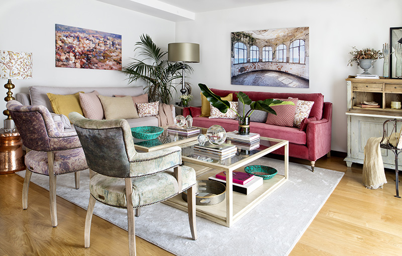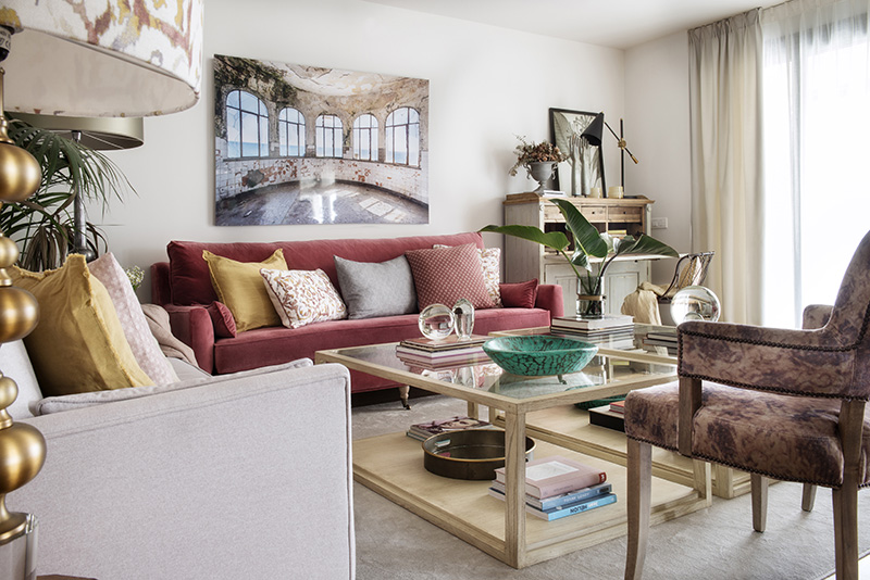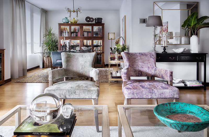 La elección de sillas y sillones, de alfombras, cuadros y tapices, así como de lámparas y plantas se realizan de forma meticulosa, de acuerdo con el estilo marcado por los futuros habitantes, pero bajo el criterio profesional de la diseñadora. “Es ahí donde reside el equilibrio, y de esta sintonía depende el resultado del proceso decorativo”, apunta Sandra Marcos con relación a la tarea que corresponde a interiorista y a clientes en este proceso.