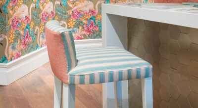 El estampado de flamencos queda especialmente bien en sillones y butacas de línea clásica, pues al ser una tapicería original y divertida, conseguiremos una magnífica combinación. Esta puede ser una buena solución para integrar muebles antiguos en ambientes modernos.