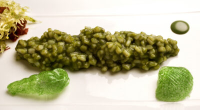 “Arroz del mar con conchas marinas”: Trampantojo de arroz elaborado con calamar y algas marinas