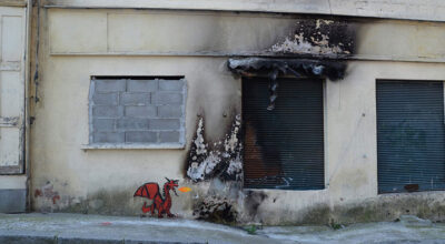 De un rasguño en la pintura de la pared surge el humo de cualquier fábrica y, de repente, el Gato Risón de Alicia en el País de las Maravillas reaparece acostado sobre un juego de sombras. King Kong lucha por su chica en lo alto de un improvisado rascacielos y Jack Nicholson nos lanza esa mirada de locura desde una brecha en una puerta. Con el arte de oakoak, la ciudad deja de ser un simple escenario de nuestras vidas para convertirse en el protagonista de la mejor de las rutinas.