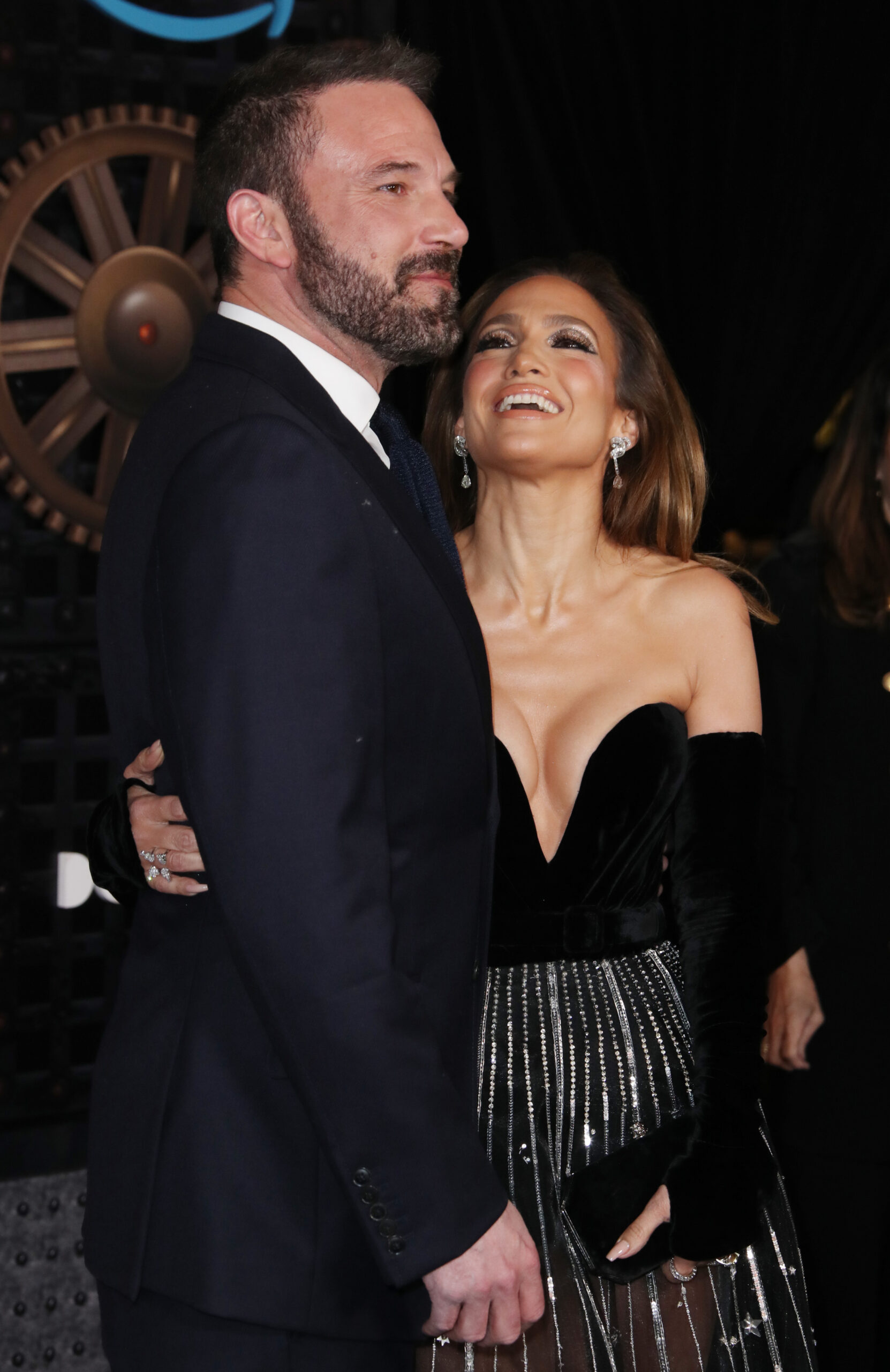 Jennifer deslumbró con un vestido de Zuhair Murad, con falda bordada con los símbolos del zodiaco, un guiño a su fascinación por la astrología. Ben, por su parte, lució un elegante traje azul marino.