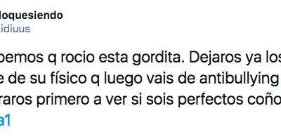 Por desgracia, la apariencia física sigue siendo un buen pretexto para atacar a alguien en las redes sociales y como era de esperar, Rocío Flores se convertía en el blanco de todas las críticas por el simple hecho de haber cogido unos kilitos de más en los últimos meses, algo que según comentaba su padre, se debe a una medicación que ha estado tomando y que ha sido la causante de esta subida de peso. El caso es que, por una vez rompo una lanza a favor del clan asegurando que meterse con alguien por el físico no hará otra cosa que convertir a esa persona en víctima y, por consiguiente, en favorita. Pepe, Hugo S, Adara y Bárbara, Miriam Saavedra… la historia de Telecinco la escriben grandes víctimas, ¿no deberíamos centrarnos en el concurso que va a hacer la muchacha y dejar los memes humillantes en el cajón de nuestros malvados cerebrillos?
